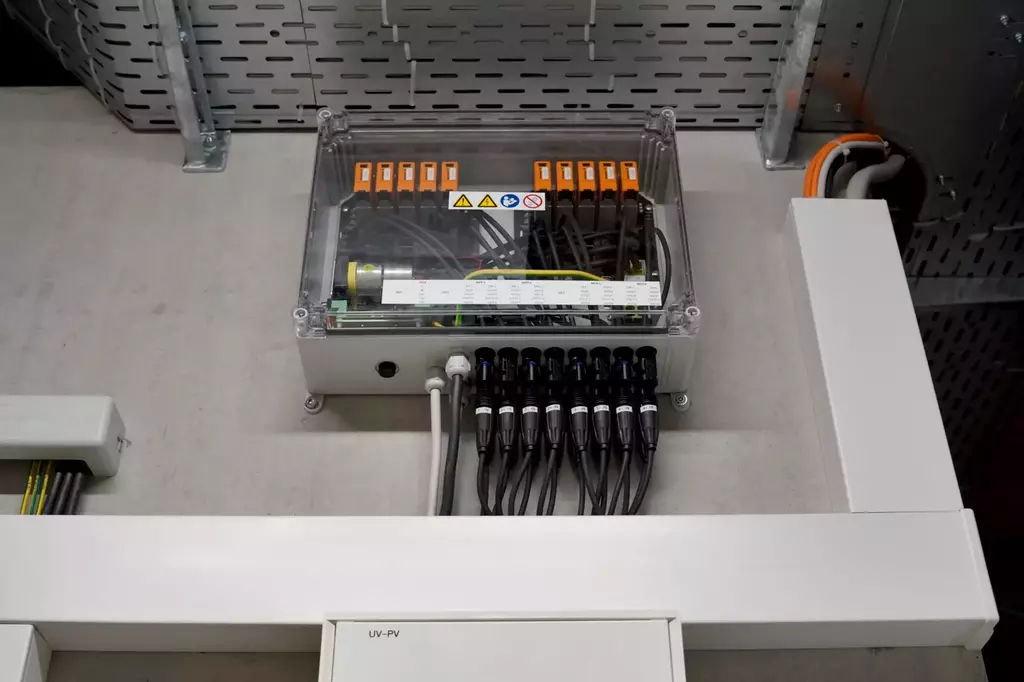 Der Neubau ist zudem mit einer Photovoltaikanlage inklusive Batteriespeicher ausgestattet, die eine effiziente Stromerzeugung und -nutzung ermöglicht. Ein Personenaufzug mit elektrotechnischer Steuerung gewährleistet barrierefreien Zugang, während sämtliche Anlagen über eine zentrale KNX-Steuerung komfortabel überwacht und gesteuert werden können.